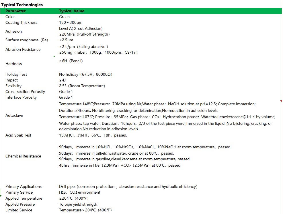 Primary ApplicationsDrill pipe(corrosion protection 、abrasion resistance and hydraulic efficiency).